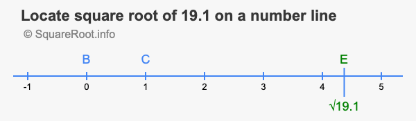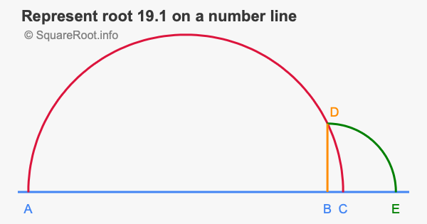 The square root of 19.1 is the distance from B to E. To make things clearer, we have also created the illustration below showing where B, E, and the square root of 19.1 are located on the number line, labeled with numbers instead of the half circle, quarter circle and vertical line.